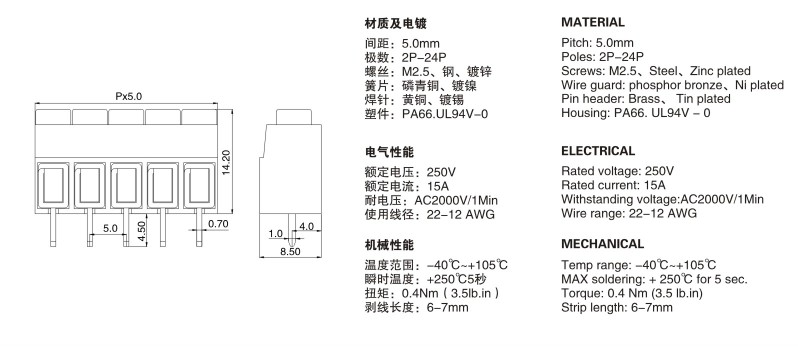| KF168-5.0 PCB Screw Terminal Blocks | ||